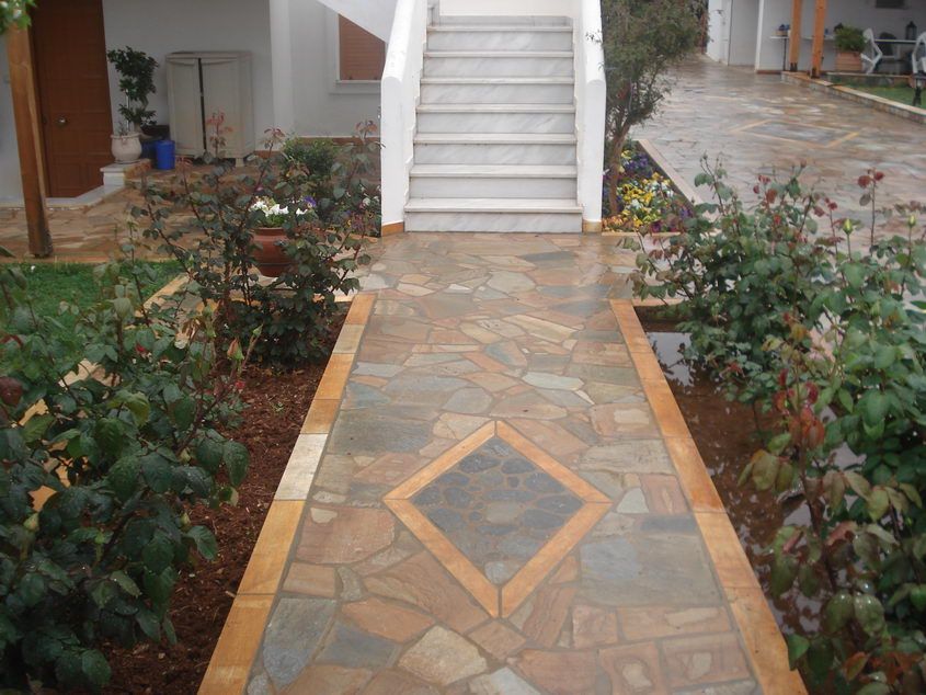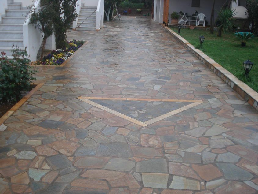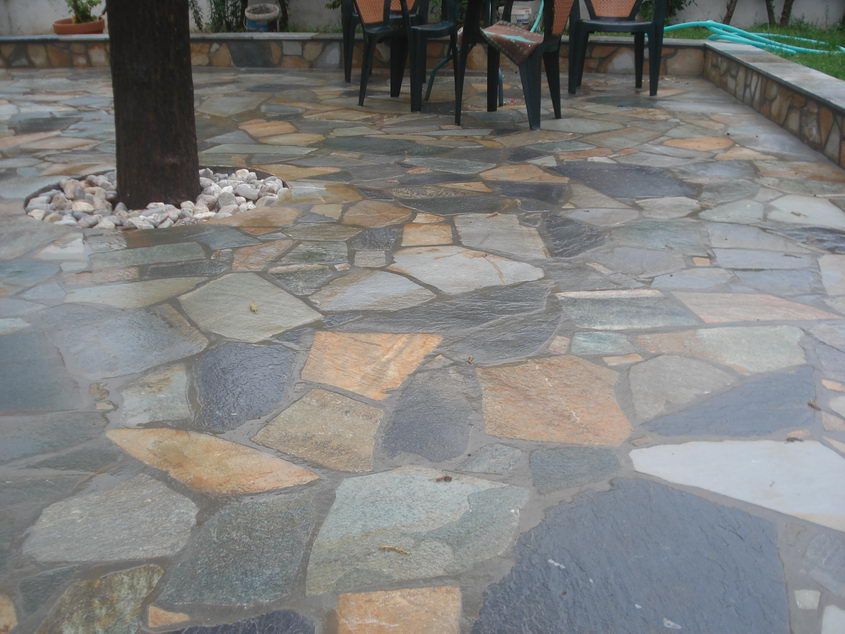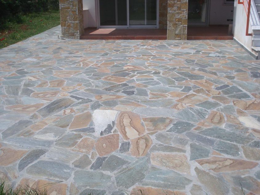 Επένδυση εξωτερικού δαπέδου με ακανόνιστη Ανάμεικτη Καρύστου Επένδυση εξωτερικού δαπέδου με ακανόνιστη Ανάμεικτη Καρύστου |